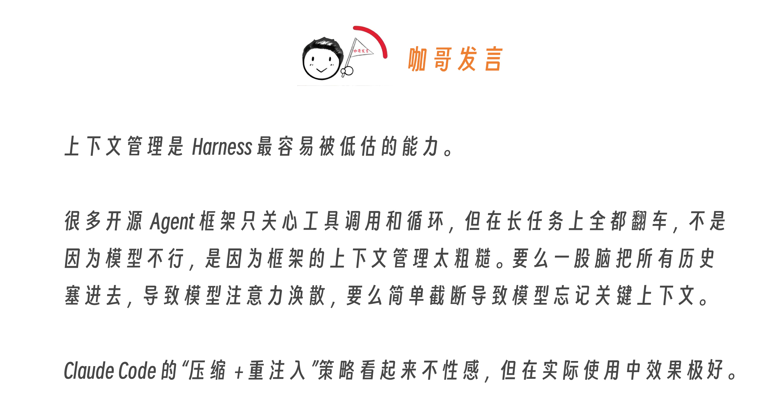 大多数人讨论 Agent 框架时,只关心工具和循环。但 Harness 最精巧的部分,其实是 上下文管理