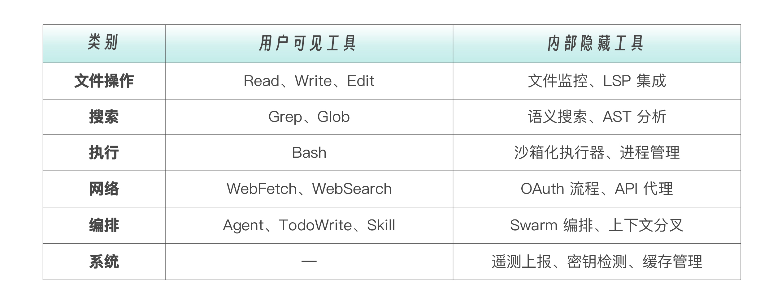 源码启发:实际有约 40 个工具。 我们当时统计的 15 个,只是用户可见的工具。源码中还有大量 内部工具 不对外暴露。