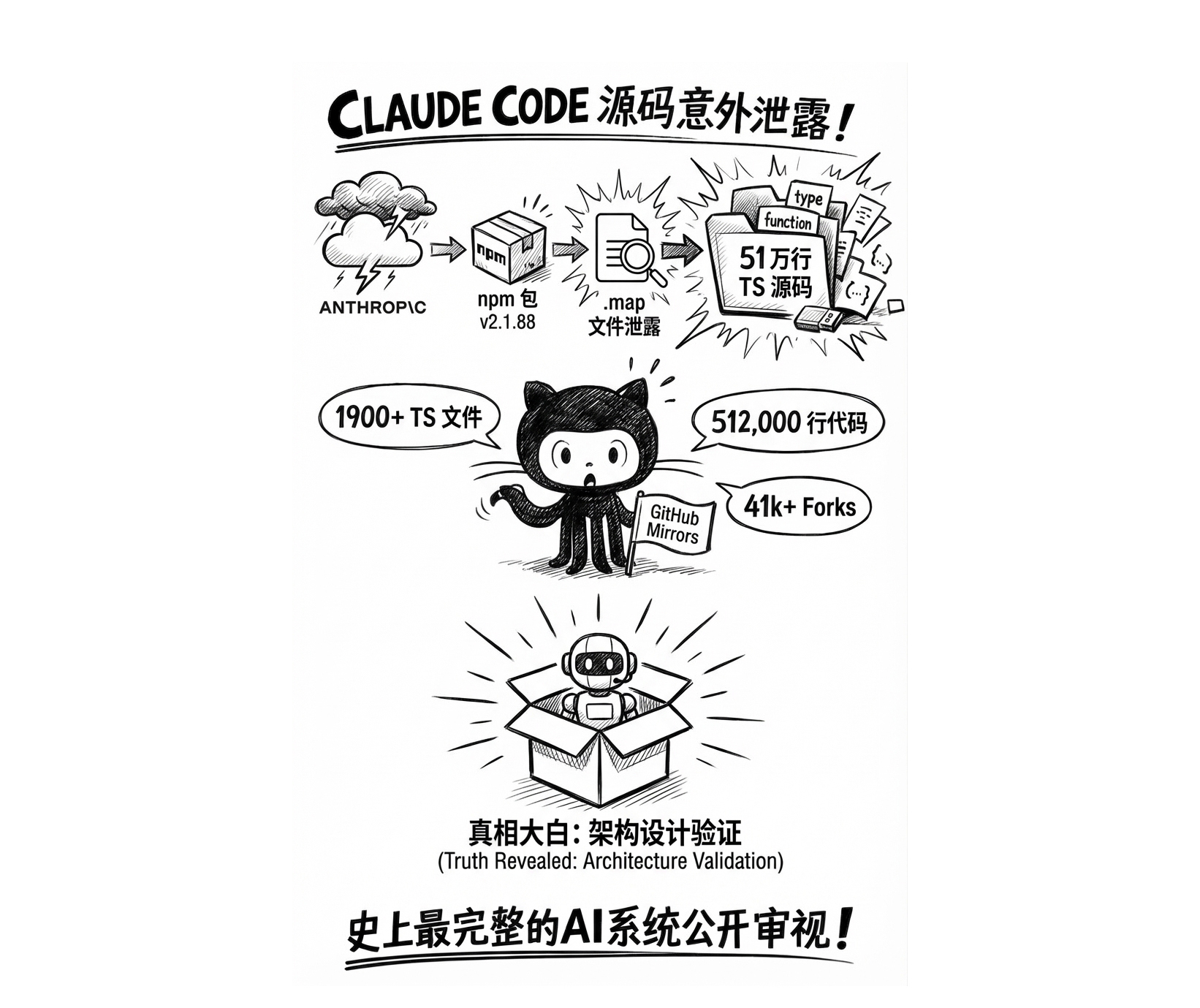 释题:真相大白。2026 年 3 月 31 日,Anthropic 在发布 Claude Code v2.1.88 时,因 `.npmignore` 配置疏忽(主流推测),将一份 59.8MB 的 source map 文件随 npm 包一同发布。这份文件映射了完整的原始 TypeScript 源码——1,900 个文件,512,000 行代码。数小时内,源码被全网镜像,GitHub fork 超过 41,000 次。我们从第一讲起,就在黑箱外推测的那些架构设计,现在全部真相大白。你好,我是黄佳。 昨天(2026年 3 月 31 日),有人发现 `@anthropic-ai/claude-code` 的 v2.1.88 npm 包中包含了一个不该出现的文件——`cli.js.map`。这是一份 **source map** ,本用于内部调试,它能将编译后的混淆代码精确映射回原始的 TypeScript 源文件。 Anthropic 随后撤下了该版本,发表声明“这是一个由人为失误导致的打包问题,不涉及安全漏洞,不涉及客户数据或凭证”。但为时已晚——源码已被多个 GitHub 仓库镜像存档。  这不是一次“黑客攻击”。这是一次 **工程事故** ——一个 `.npmignore` 配置的疏忽。但它对我们的课程来说,是一次极其珍贵的验证机会。 从第1讲(全景认知)到最新的第18讲(工具系统),我们一直在黑箱外推测 Claude Code 的内部架构——通过官方文档、行为观察、API 分析来还原它的设计逻辑。现在,源码摊在了面前。 **我们的推测对了多少?有哪些出乎意料的发现?对 Harness 工程有什么新的启示?** 这一讲不是事件报道,而是 **架构验证** 。我把源码中最重要的发现,逐一映射回我们课程中讲过的每个模块。 泄露的规模与结构有多大,我们先看数字:  下面,我们从源码的级别来拆解,也借助Claude Code本身的强大代码分析功能,与课程一一对照。我总结出了10大发现。(除了这篇加餐,4月2日我也应极客时间邀请做了一场“拆解 Claude Code 源码中的企业级 AI 落地密码”的直播,直播回放链接在这里 https://live.geekbang.org/room/2508 )