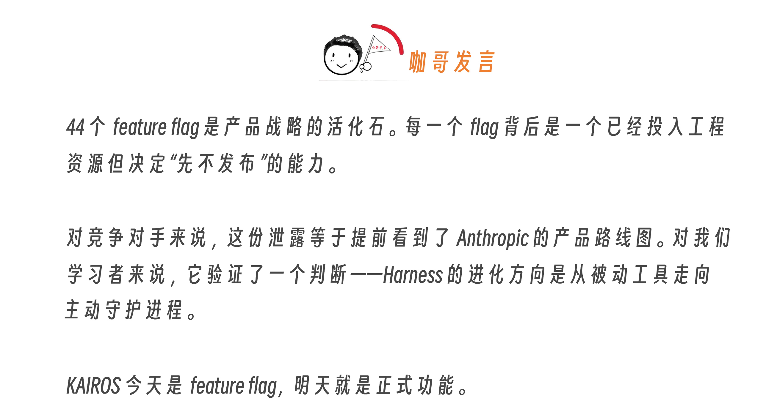 - KAIROS 代表了 Harness 的下一个进化方向 ——从被动工具到主动守护进程。这不是科幻,是编译在代码中、正等待发布的功能。