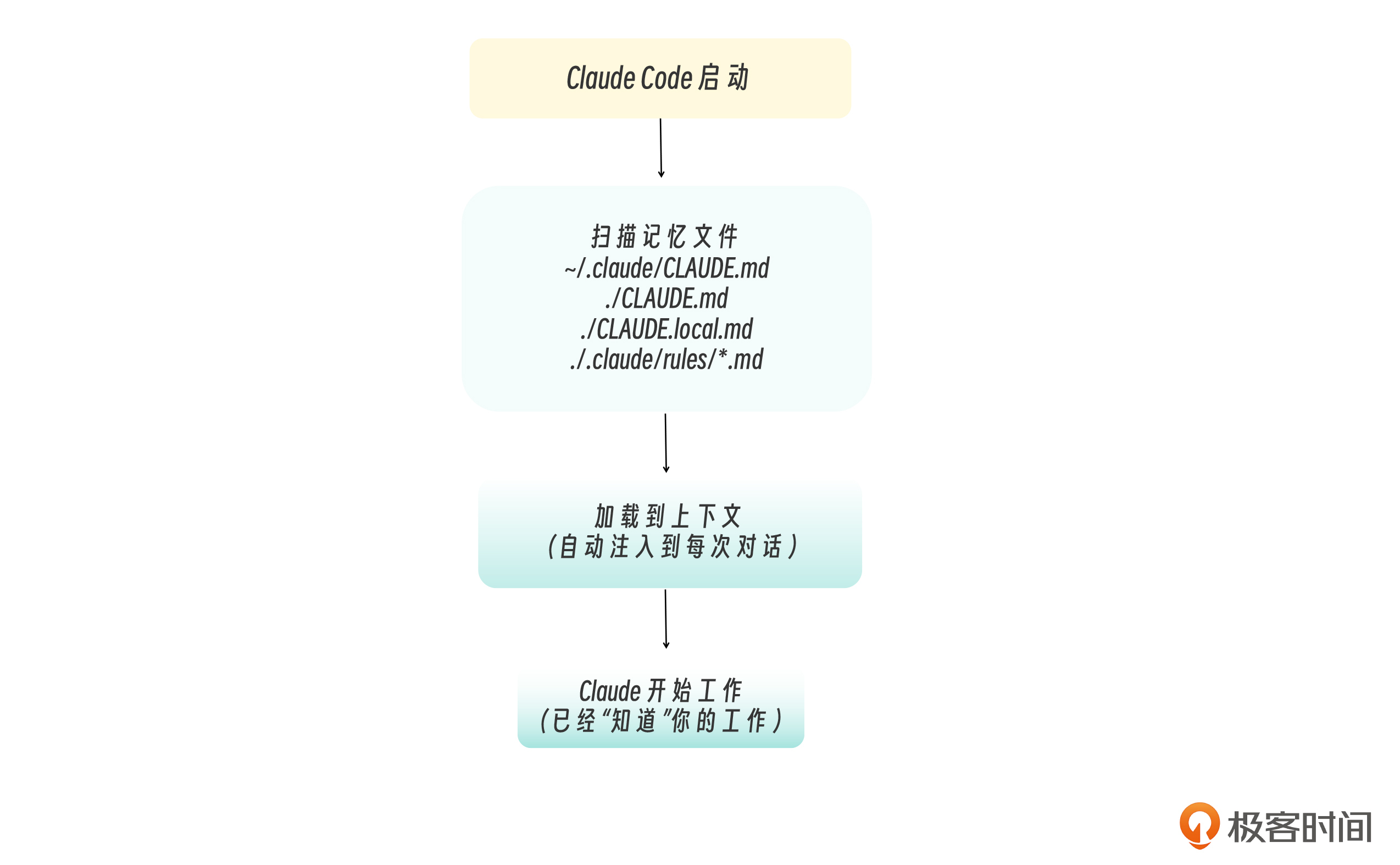当你在项目目录启动 Claude Code 时,发生的“记忆系统初始化”过程如下图所示。