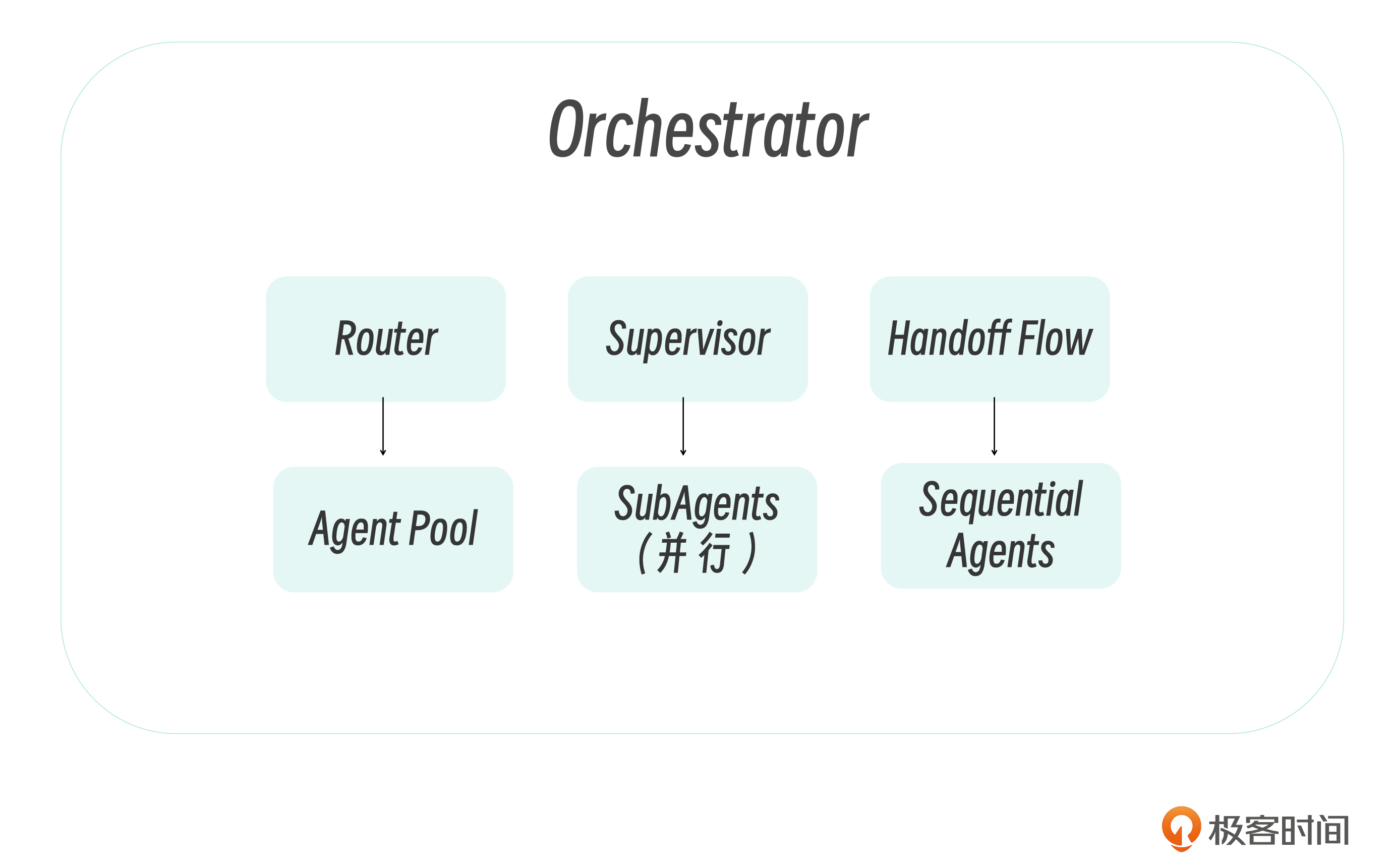 成熟系统中,不同类型的任务流可能采用不同的模式。Router 处理分类,Sub-Agent 处理并行研究,Handoff 处理顺序流程。