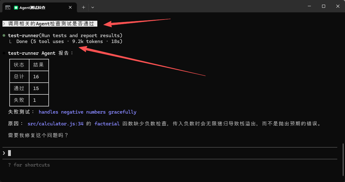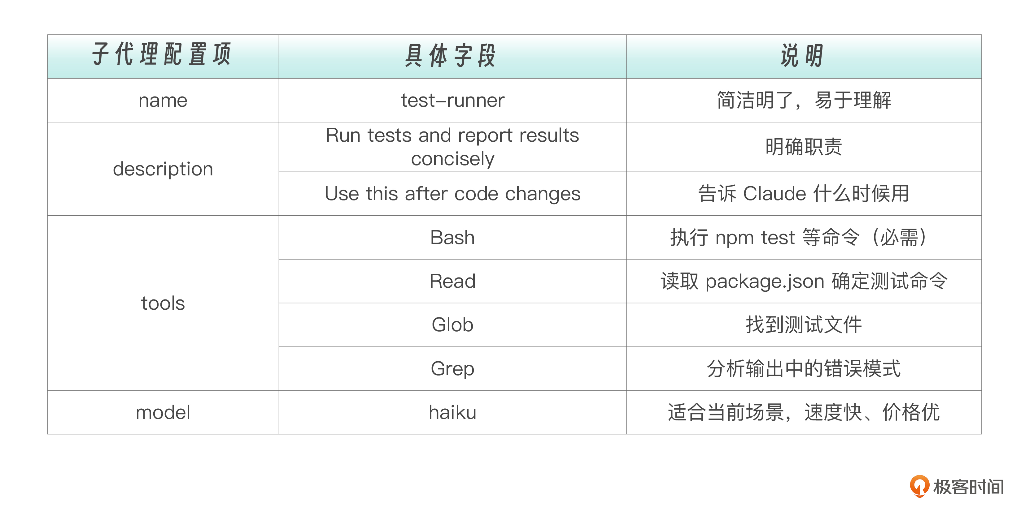 今天我们要创建两个子代理。一个是 **测试运行器** ,负责执行测试,总结结果。另一个是 **日志分析器** ,用来分析日志,提取关键问题。