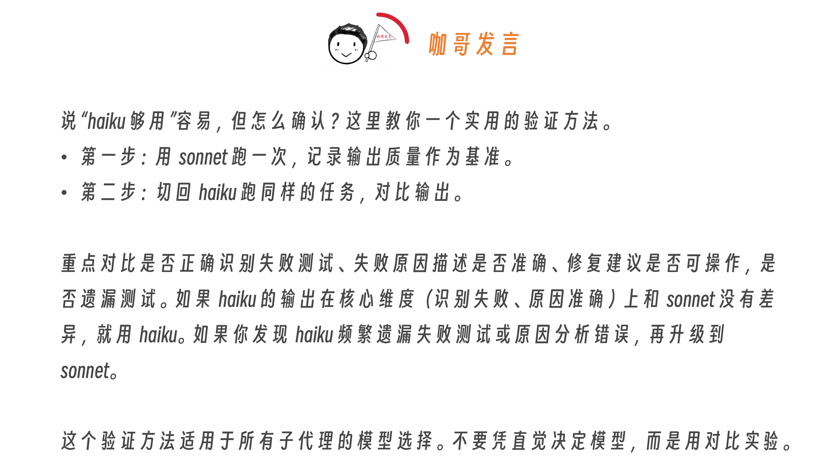 2.选择合适的模型 :不是所有子代理都需要最强的模型。根据任务复杂度选择,既省成本又快。