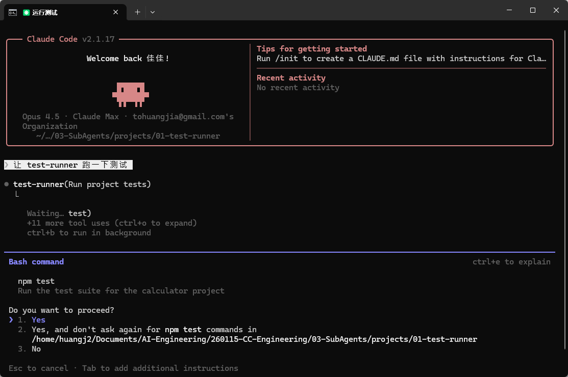 最关键的步骤是创建测试运行子代理,参考 `.claude/agents/test-runner.md`中的配置。