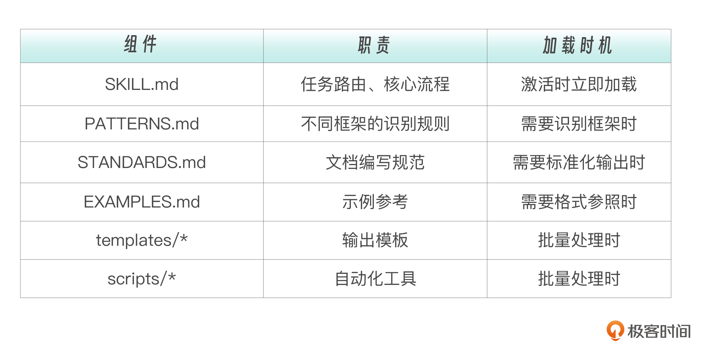 │ Skill(SKILL.md + 附属文件)负责: │