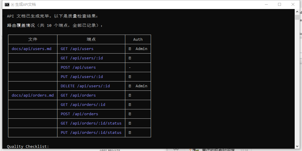 > 用 quality-checker 验证 docs/ 目录下生成的文档