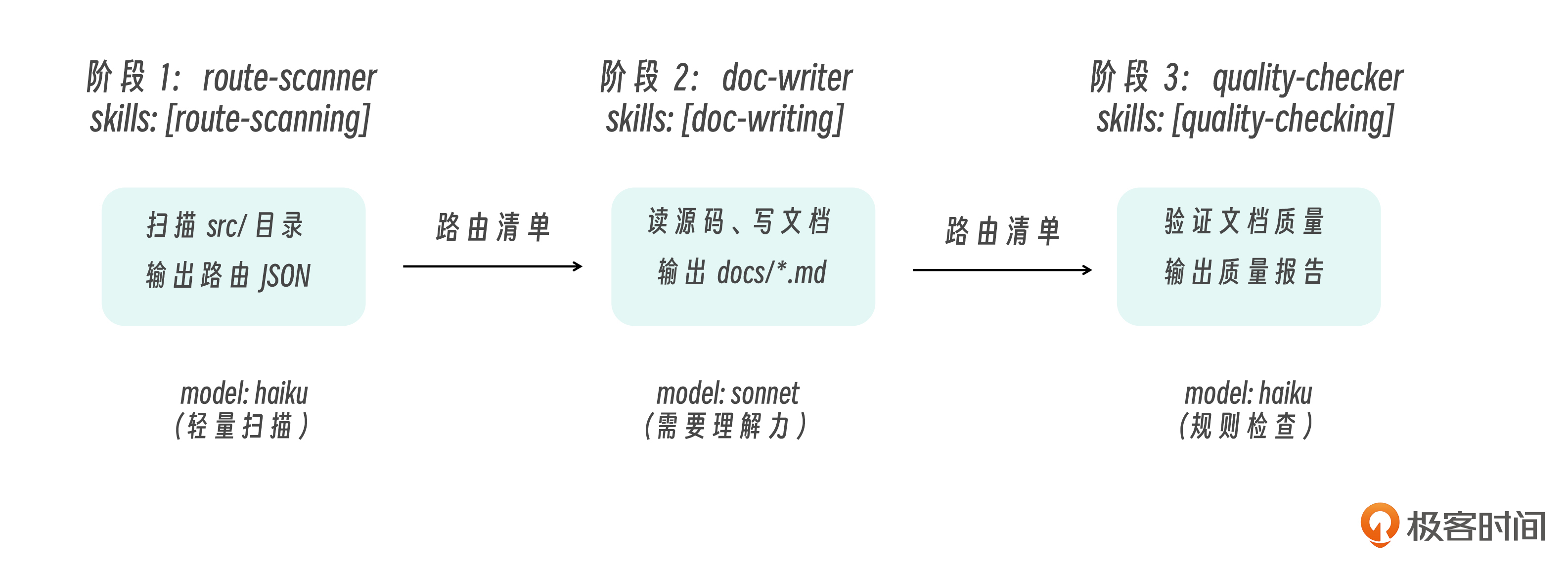 - 设计一个你自己项目中的流水线:画出阶段划分、每阶段的 SubAgent 角色和 Skill 职责、阶段间的数据接口。