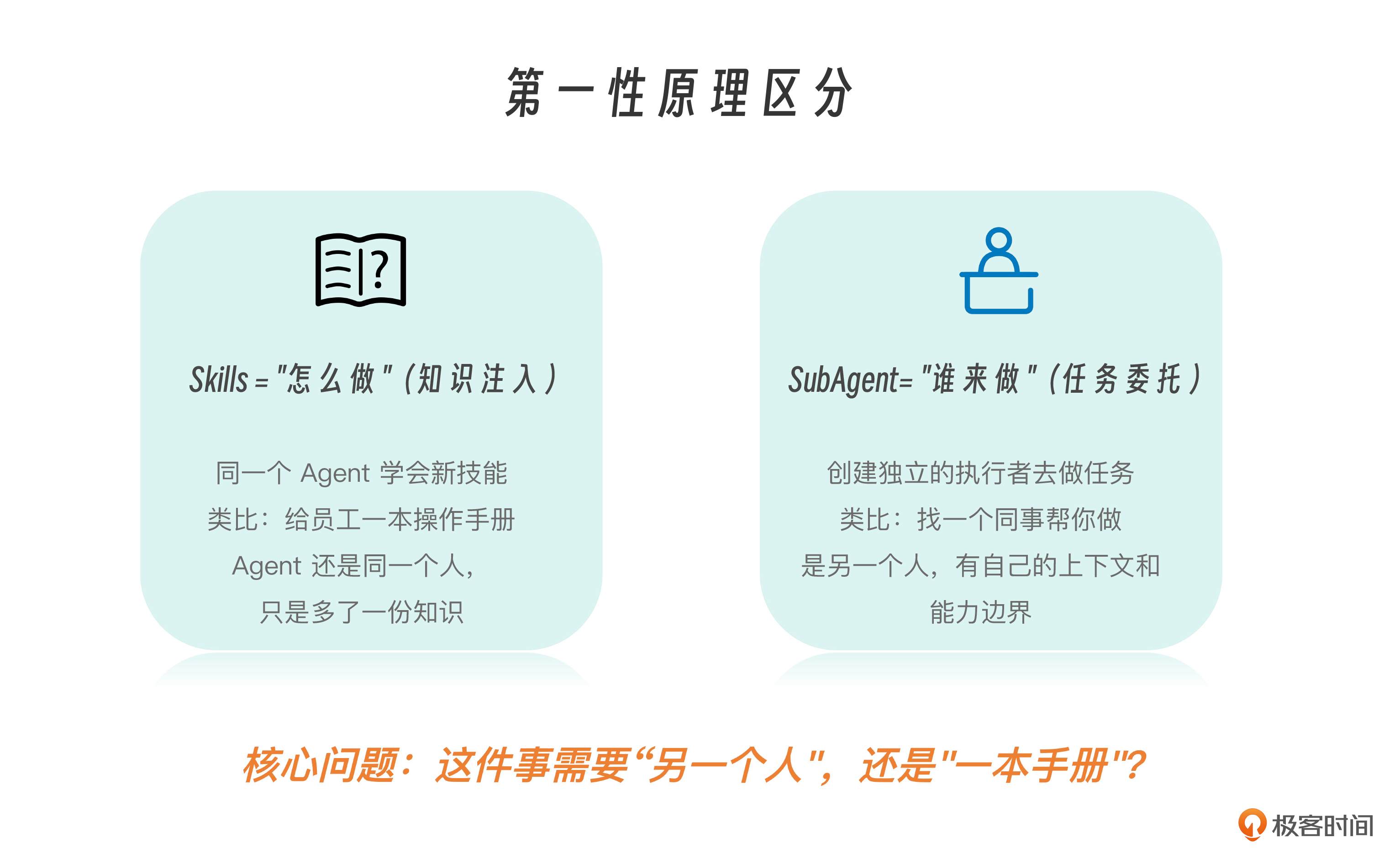 当你犹豫到底是用 Skill 还是用 SubAgent 的时候,做出选择的核心判断标准在于:这件事到底需要“另一个人”来承担,还是只需要“多一本手册”来指导?