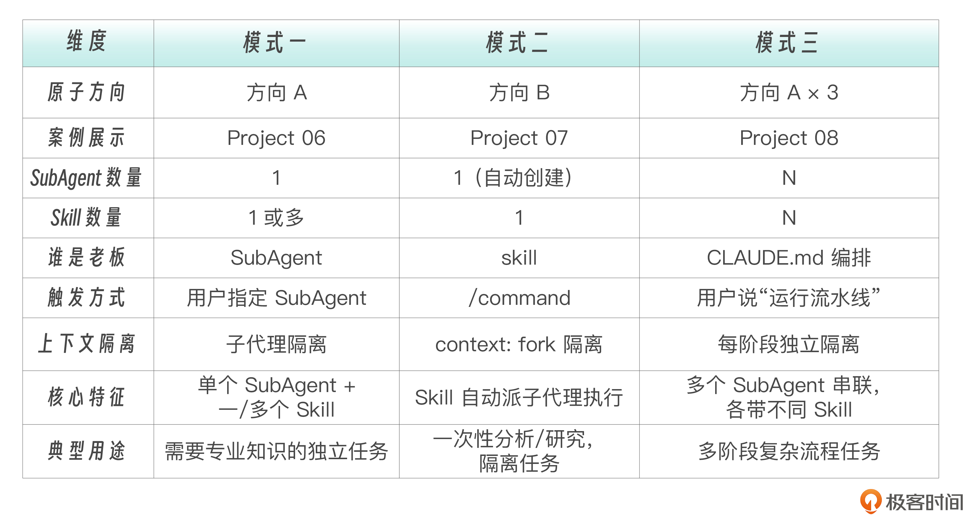 为了帮你更好地理解和区分,我将这三种模式总结成了一张表。