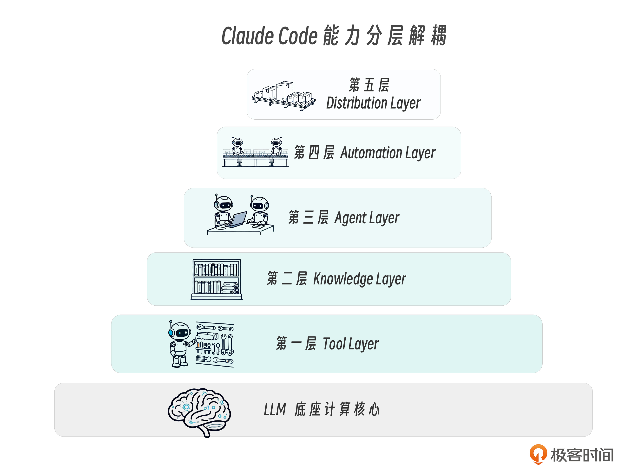 如果把 Claude Code 五层架构看作一栋工程化系统大厦,可以按“能力分层解耦”的方式理解。